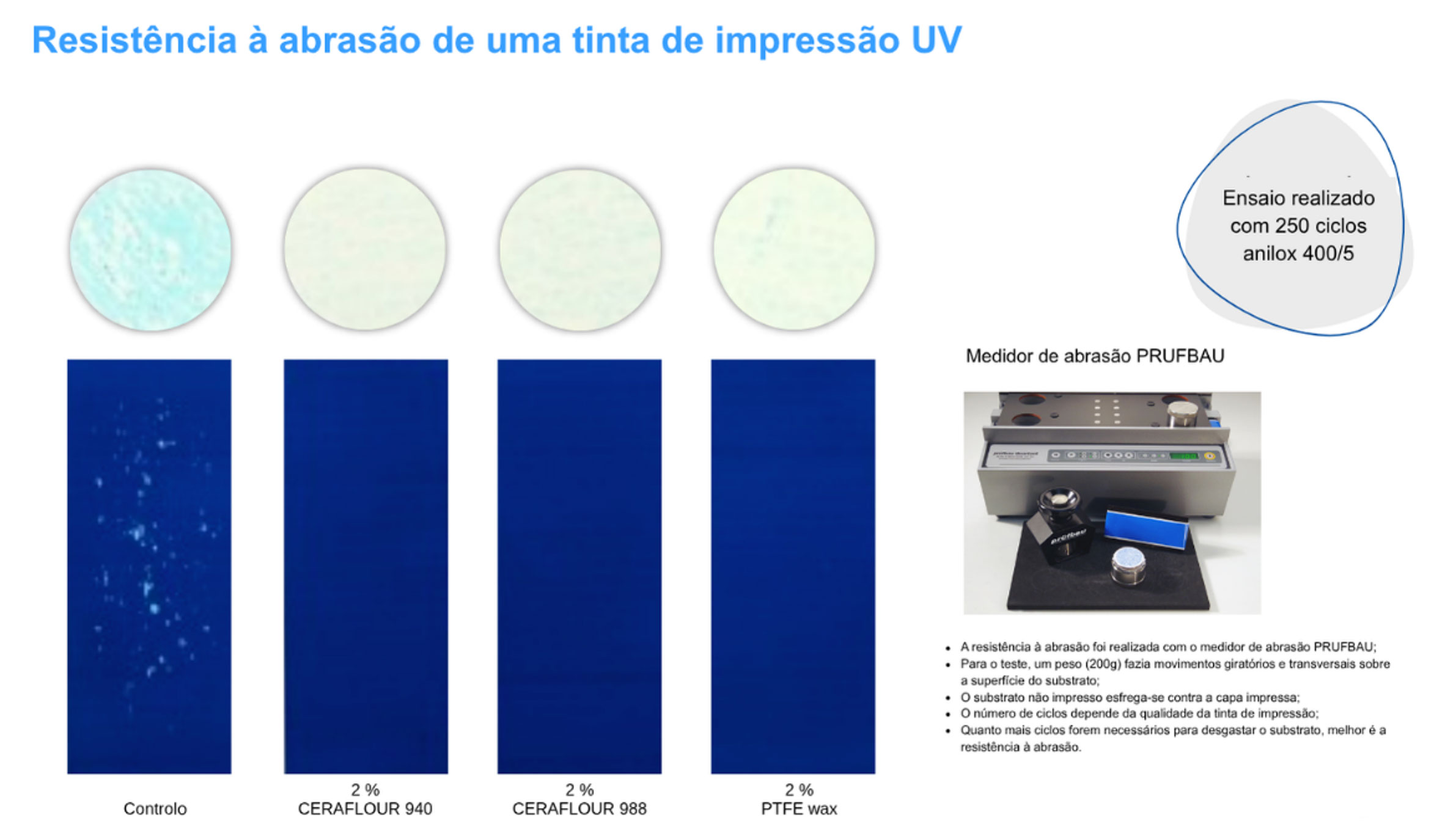As ceras da gama CERAFLOUR podem melhorar propriedades como a resistência ao atrito ou o deslizamento da superfície, além de proporcionar um efeito mate ou suave ao toque.