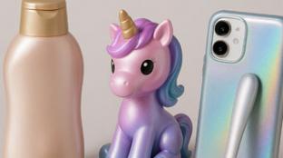 Ilustração 1. Exemplos de produtos plásticos com pigmentos perlescentes. Imagem criada por IA.