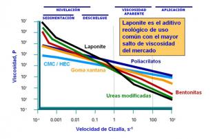 La adición de Laponite® SL25 a formulaciones que contienen resinas, tensoactivos y/o pigmentos, produce un desarrollo rápido de reología siempre y cuando el nivel de sólidos sea suficiente.